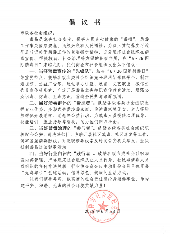 • 禁毒倡議書